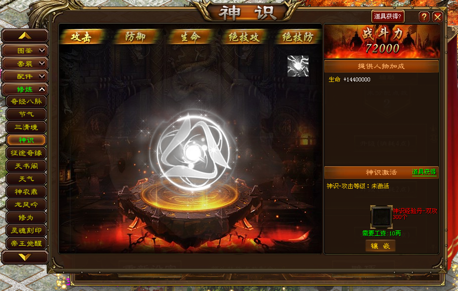 玩家可消耗不同类型的神识经验丹提升对应神识等级,获得更高的人物属性加成