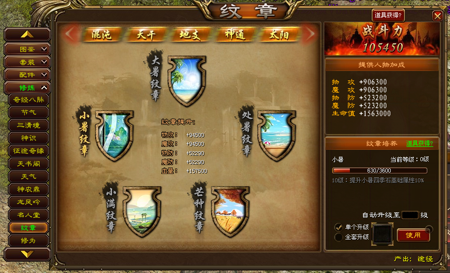 玩家可消耗对应的纹石来培养提高纹章的等级。