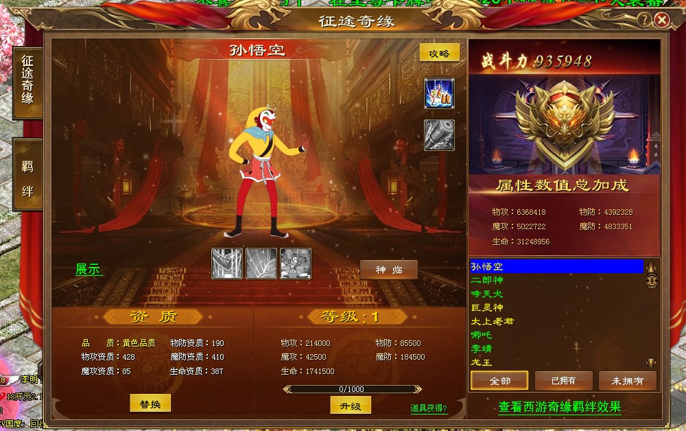玩家可消耗奇缘经验丹与其他已鉴定的征途奇缘,提升目标征途奇缘的等级与属性。