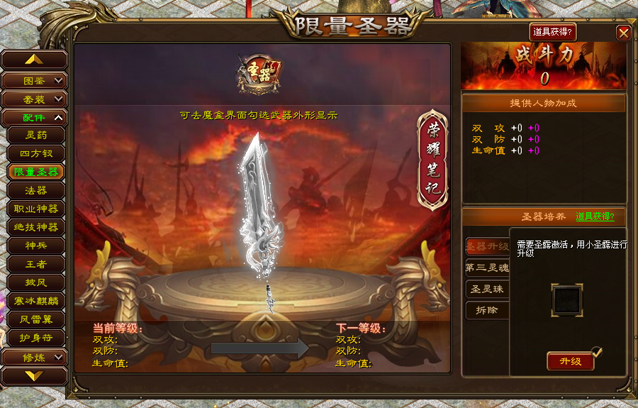 玩家可以使用圣露激活圣器,使用小圣露对已激活的圣器进行升级