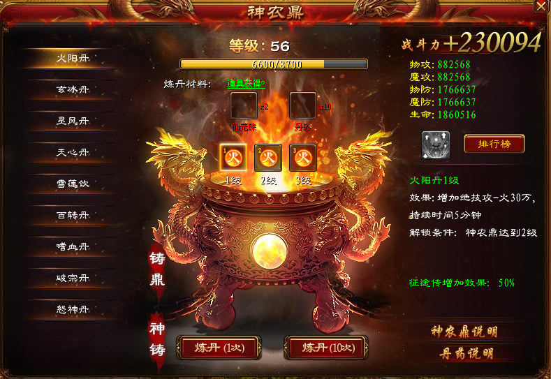 玩家可消耗仙元珠与特定材料炼制指定丹药,不同丹药可对角色技能属性提供独特加成;额外消耗低等级丹药,可炼制更高等级丹药,获得更强属性加成。