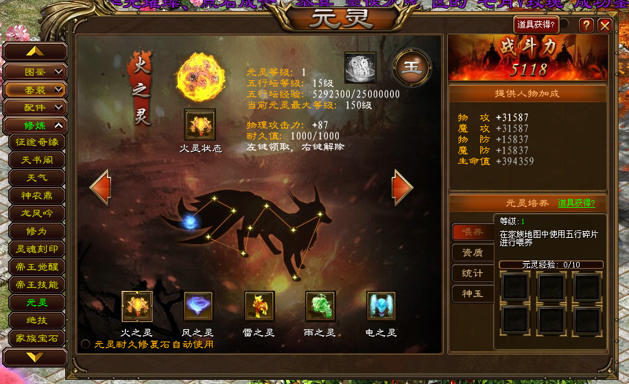 玩家可消耗元灵精魄与火星精魄提高元灵资质。