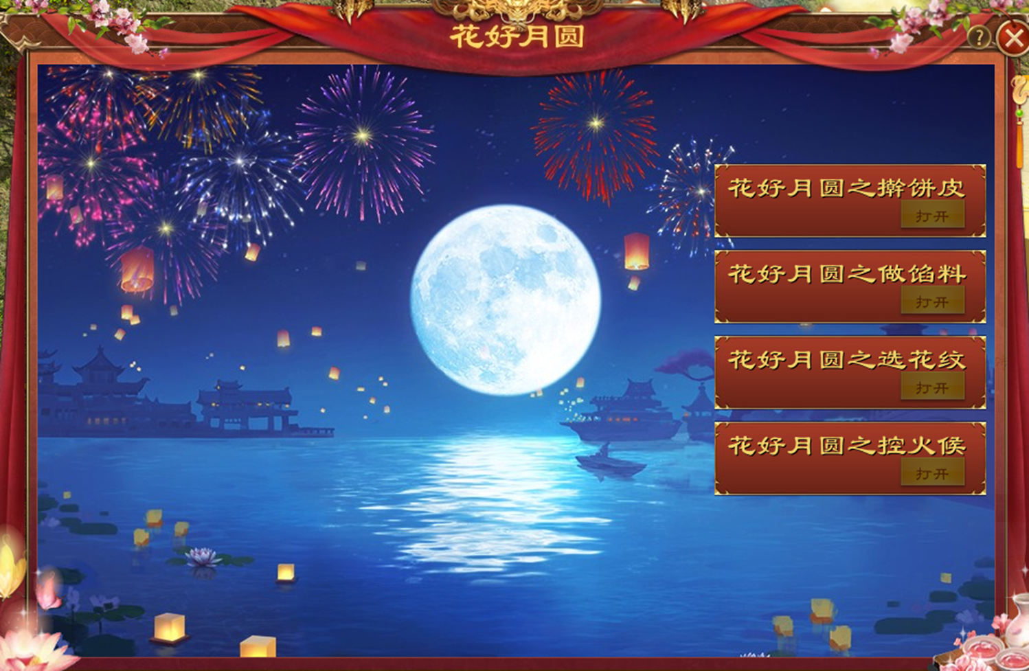 中秋时节,和家族的小伙伴们一起做月饼吧!制作月饼需要经过擀饼皮、做馅料、选花纹和控火候四个步骤,根据每个步骤的积分总和,还会有额外的评分排名奖励哦!