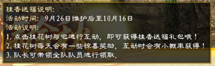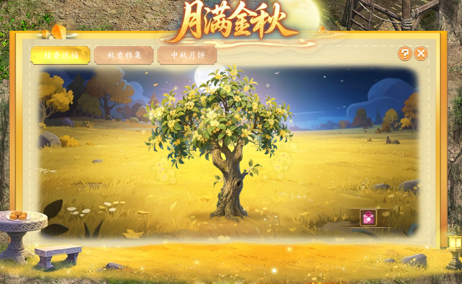 中秋月高挂,庭院桂花开。院子里出现了一颗神奇的桂花树,和它互动就会获得奖励。若是在树下虔诚祈福,还有机会获得惊喜奖励哦!