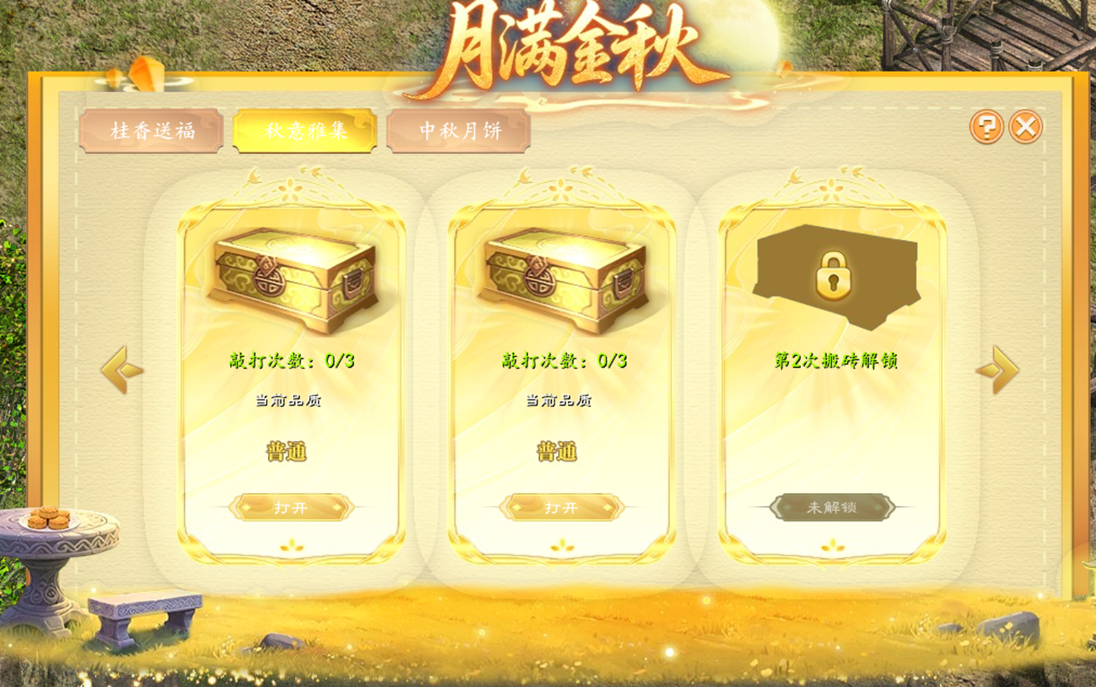 活动奖励:月饼头像卡碎片盲盒、金秋月饼(可兑换任选韧性坐骑、蛮荒之灵、九州神器)、未鉴定儿女装备等。