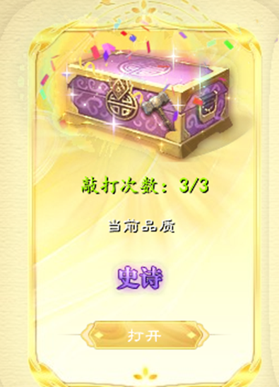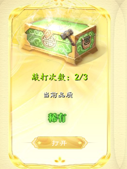 完成刺探、搬砖、运镖和在线任务,可以结果一共6个箱子。每个箱子都会有3次敲打机会,来试试你的运气如何吧!