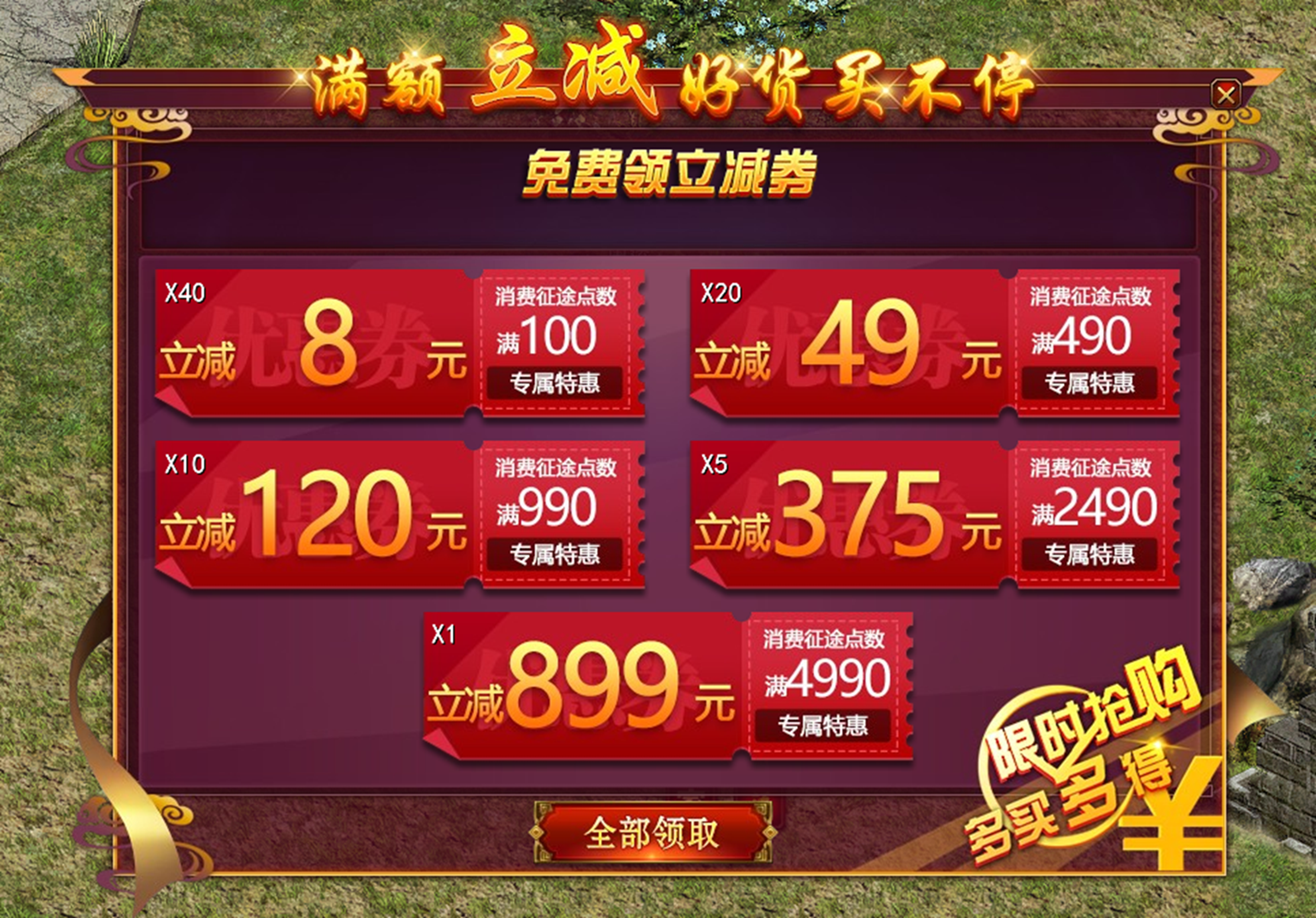 双节50-4优惠券可通过日常活跃度总奖励获得。