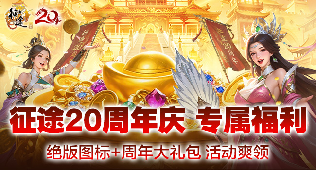 为庆祝征途全系20周年庆典,《征途》推出三重福利活动,登录即领绝版外观、红包商城豪礼送不停、轻松0元购大礼包。力度空前,诚意满满!
