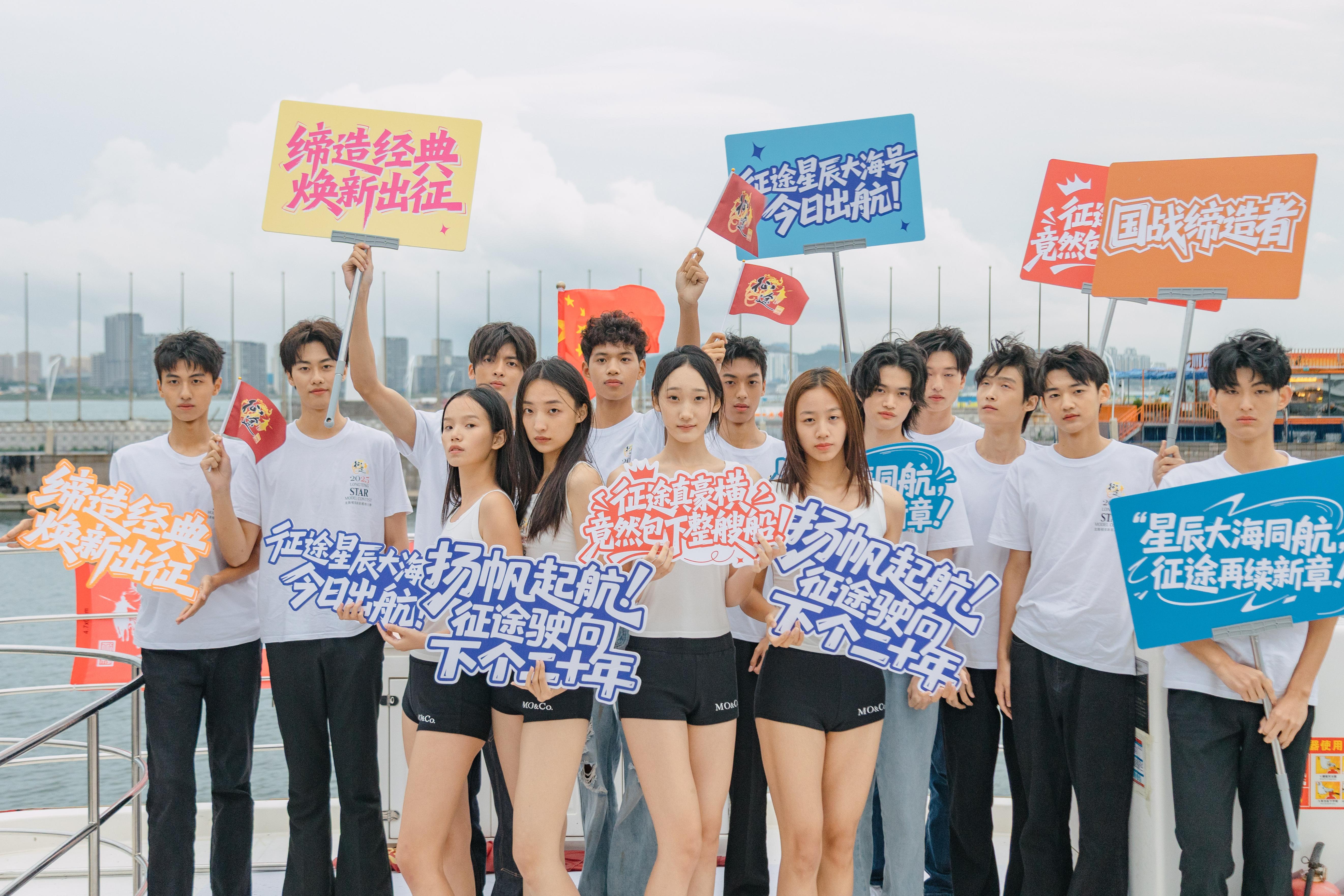 征途x龙腾精英新星模特手持标语牌迎风而立。“扬帆起航,征途驶向下个20年”、“缔造经典,焕新出征”、“星辰大海同航,征途再续新篇章”等标语,是对过往20载的致敬,也是对未来新征程的宣言。