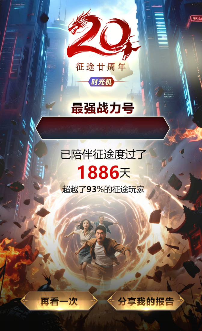 根据最终结果还可生成最强战力海报,和大家一起分享征途20周年的喜悦吧!