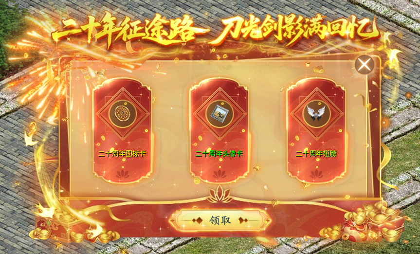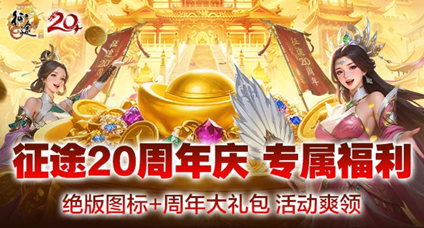 征途20周年庆典,全民上线即可领取20周年纪念图标卡、头像卡和翅膀。