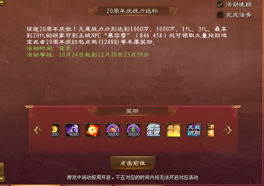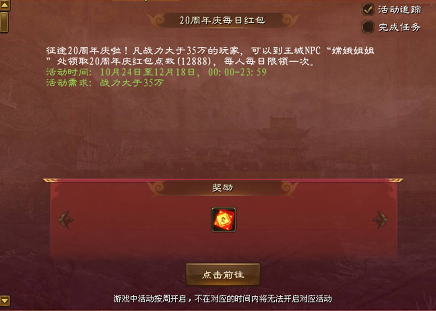 活动时间:10月24日维护后-10月26日。