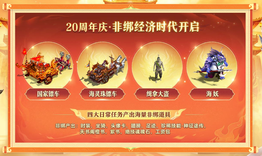 《征途》20周年庆版本改革经济系统,开启非绑经济时代,完成四大日常任务可获得非绑道具!