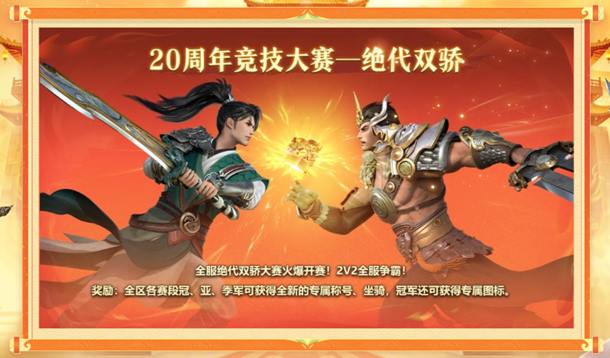 赛事奖励:参与比赛可获得绝代双骄积分,兑换各类珍稀道具。最终决出的全区各赛段冠、亚、季军可获得全新的专属称号、坐骑,冠军还可获得专属图标。