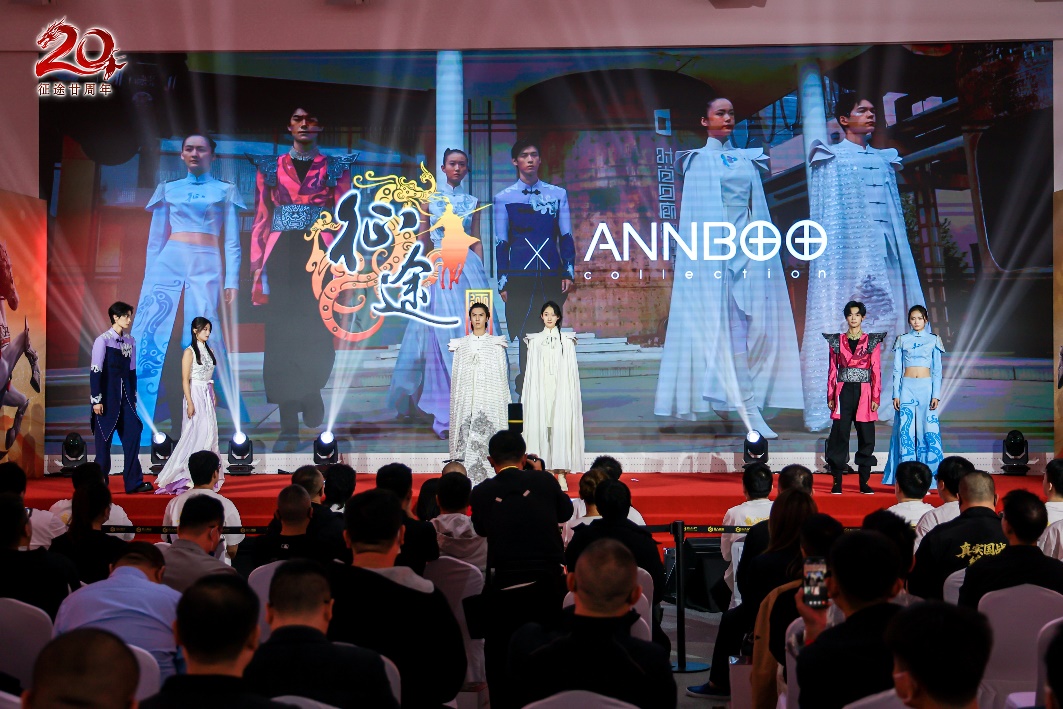 荣耀颁奖环节结束后,众多在游戏内陪伴将军多年的游戏角色纷纷亮相舞台,与观众激情互动,现场更有穿着征途20周年征途x安博联名高定时装的模特,将“经典、传承、创新”的征途精神带入现实,引得现场观众连连叫好,盛典氛围越发热烈。