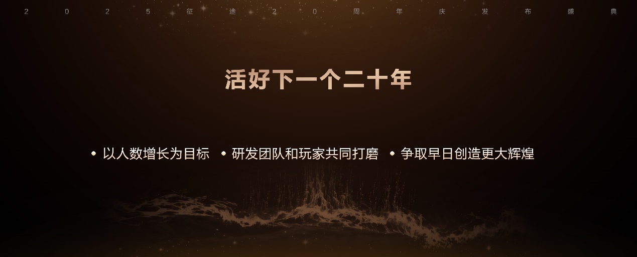最后,赵剑枫对征途未来20年提出了期待。他表示,接下来人数增长将会是征途IP的首要目标,研发团队希望能够与玩家朋友们携手共同打磨游戏,争取创造更大的辉煌。