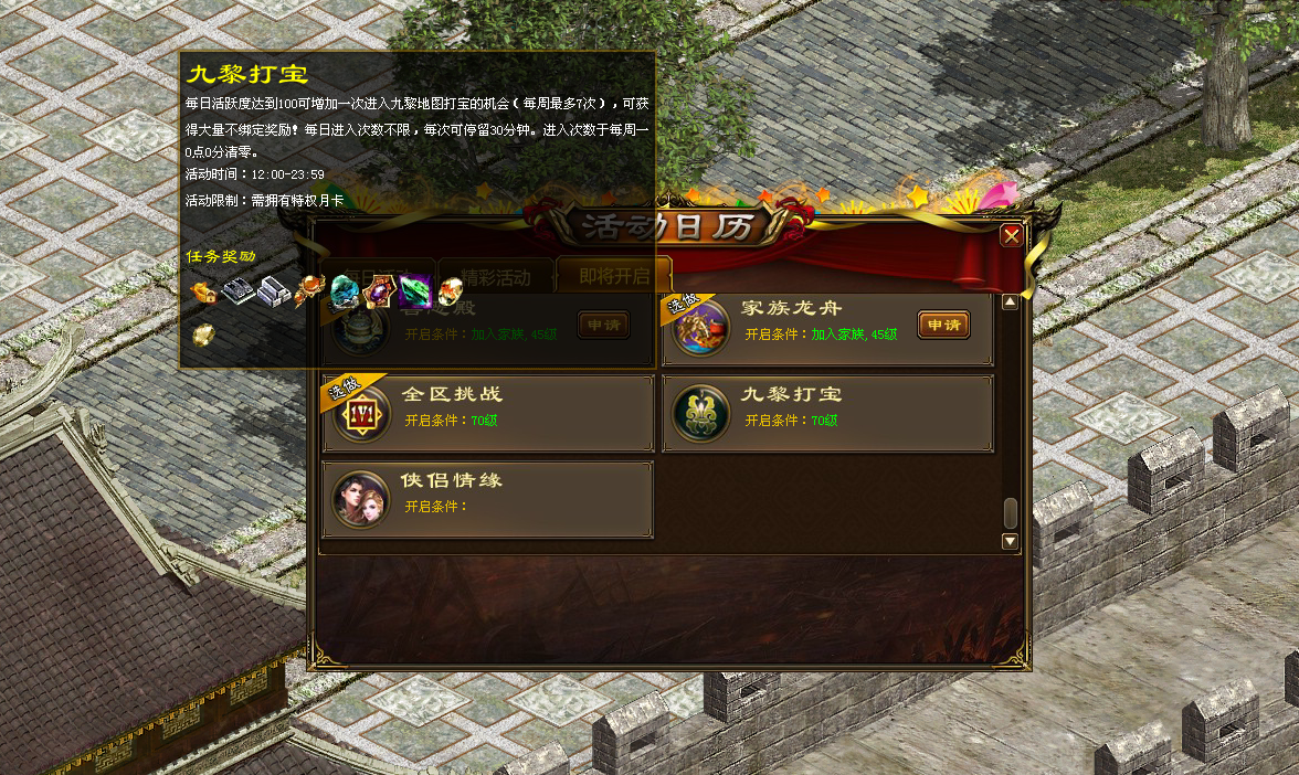 ■前往九黎打宝:等级达到70级后解锁九黎地图,作为更高阶的挑战,九黎地图将掉落更顶级的珍品:升星宝石、天魔石、魂魄石、绑金、打造材料… 靠实力拿好货!