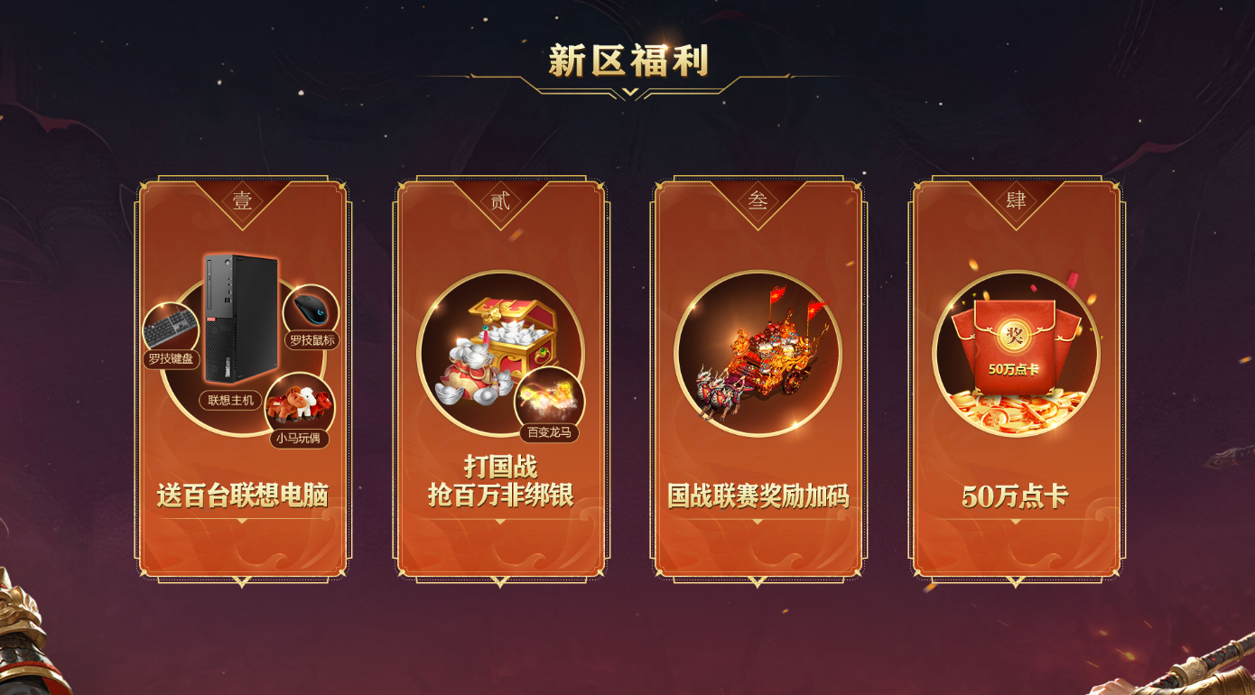 ■新区:入驻年终专属福利新区“年终激战大区”,秒杀联想电脑、666万非绑银,瓜分50万点数!2025国战联赛年终总决赛开打,爽打国战,赢永久百变龙马!