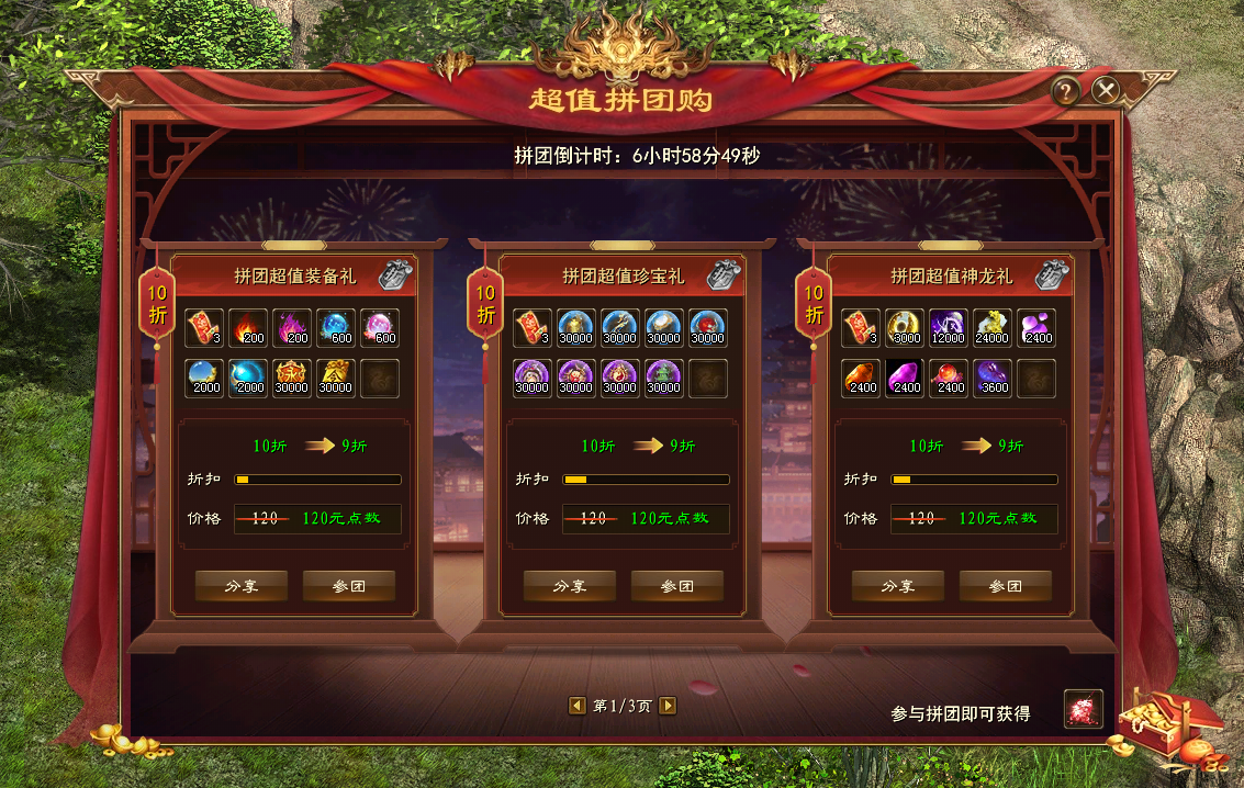 本次超值拼团购所有礼包打开后均可获得3张灯谜凭证。