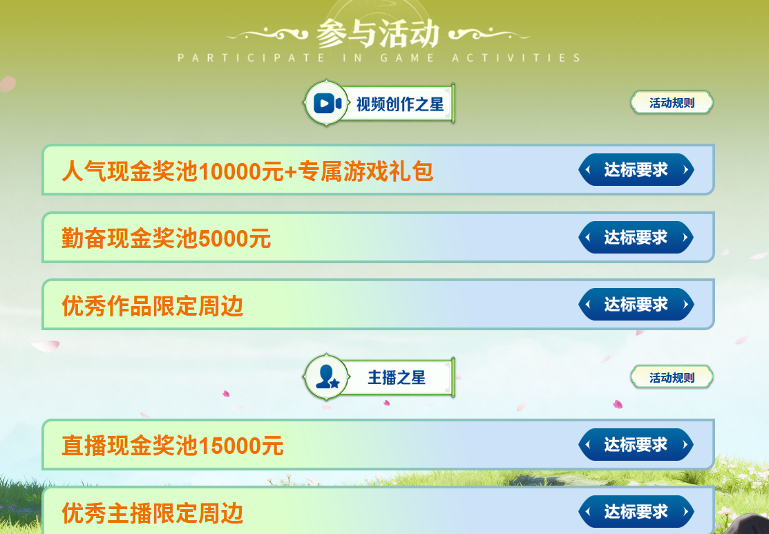 本次活动设置短视频、直播两大赛道,分别为视频创作赛道与直播赛道,双赛道并行,福利叠加,全方位覆盖不同创作偏好的玩家!在视频创作赛道,玩家可以通过日常剪辑,解说切片等形式参与活动,直播赛道助力玩家成长为征途签约主播,官方扶持,成长飞速!除了游戏道具奖励,本次活动还为优质内容创作者准备了精美周边,等你来赢!