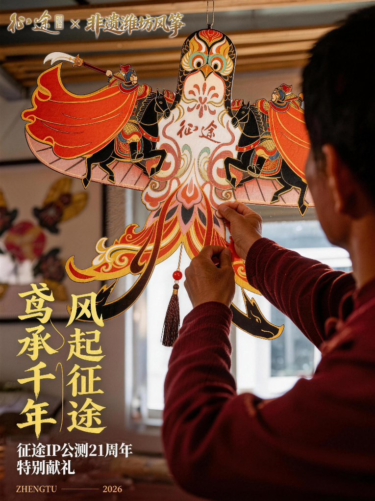 作为征途21周年在文化领域的又一次跨界联动,本次合作依旧践行着征途这款经典IP传播传统文化的使命,4月24日后,游戏内也将陆续上线非遗风筝主题活动,记得上线深度体验,在游戏中体验潍坊风筝技艺。