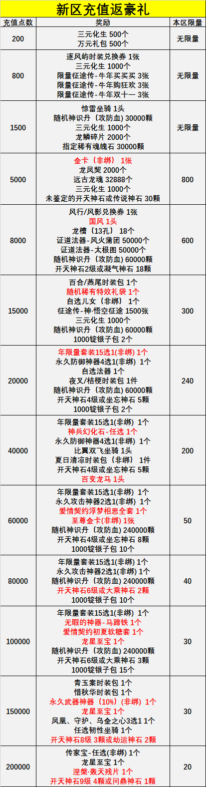 新区专属福利——充值送豪礼