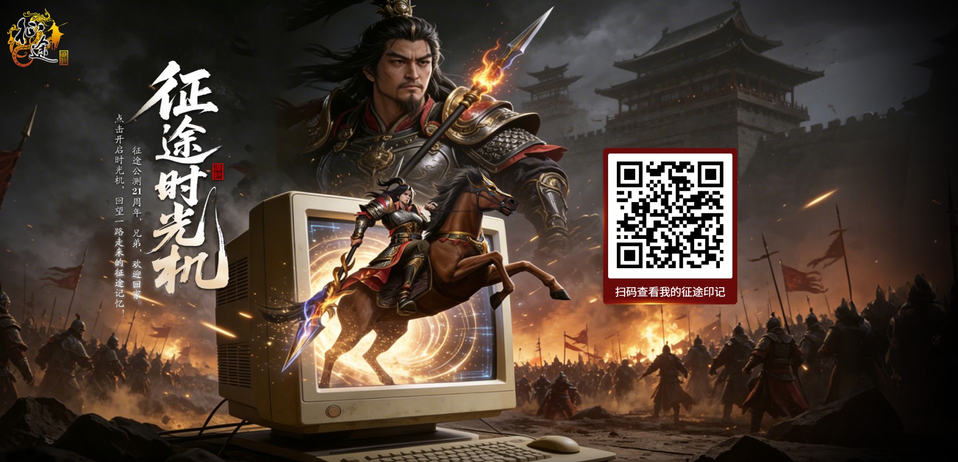 扫码登录“征途时光机”,查收你的征途情怀报告。4月24日征途IP公测21周年庆即将开启,热血二十一年,兄弟再战征途!