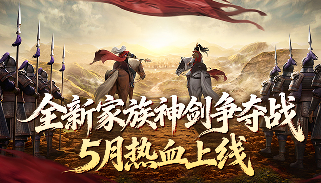 战鼓齐鸣,家族荣耀再燃征途!全新家族战・神剑争夺战将于5 月上线!跨服对决、战团布阵、据点争夺、积分翻盘,玩法全面升级,更具策略的家族对抗,即将揭开神秘面纱。