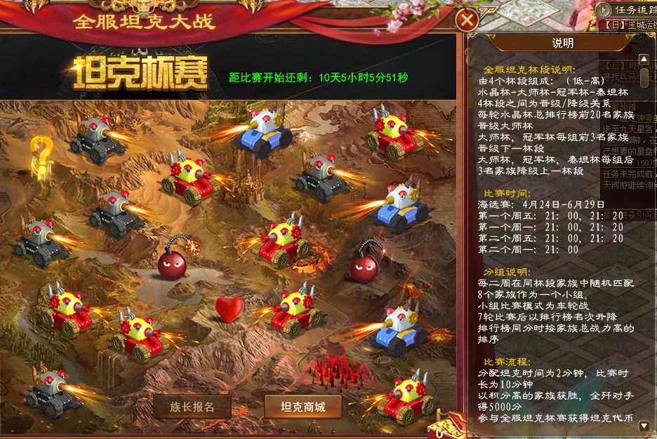 全服坦克比赛期间,本区家族坦克活动关闭。