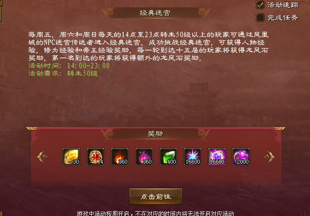 2、当周首次进入迷宫15层则可以获得迷宫闯关奖励,每周只可获得一次。