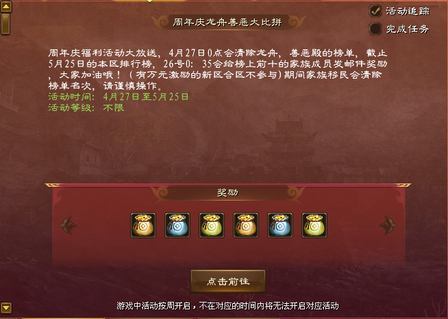 温馨提示:1、比赛开始前家族长需要重新报名。