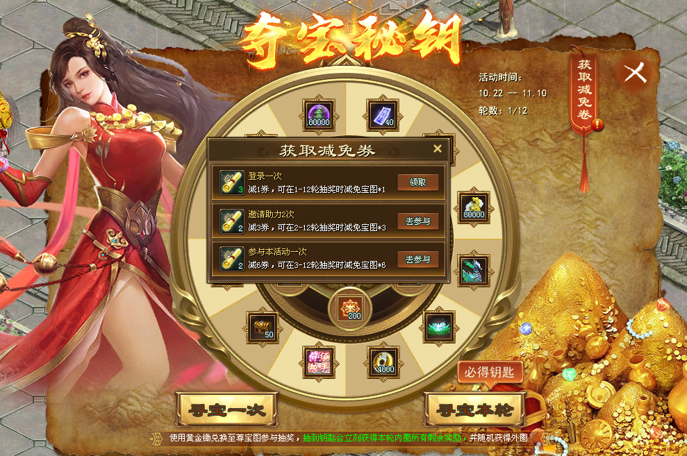 活动期间,可在王城NPC-慕容雪处可打开活动界面,在随身兑换处使用黄金锄可兑换抽奖道具“至尊宝图”参与活动,可获得全新“余生有你”套装,全新神剑图鉴“神隐”、“融雪”、“灵鸣”,全新“证道法器”。