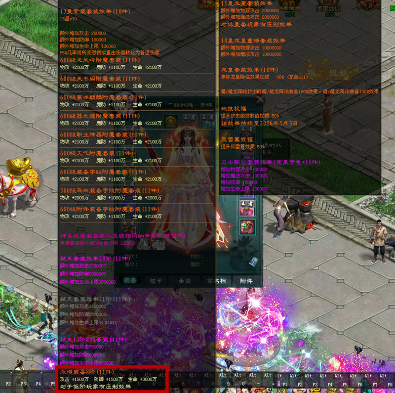 此外永恒装备还带有压制效果,PK时,对等阶比自己低的玩家有效。